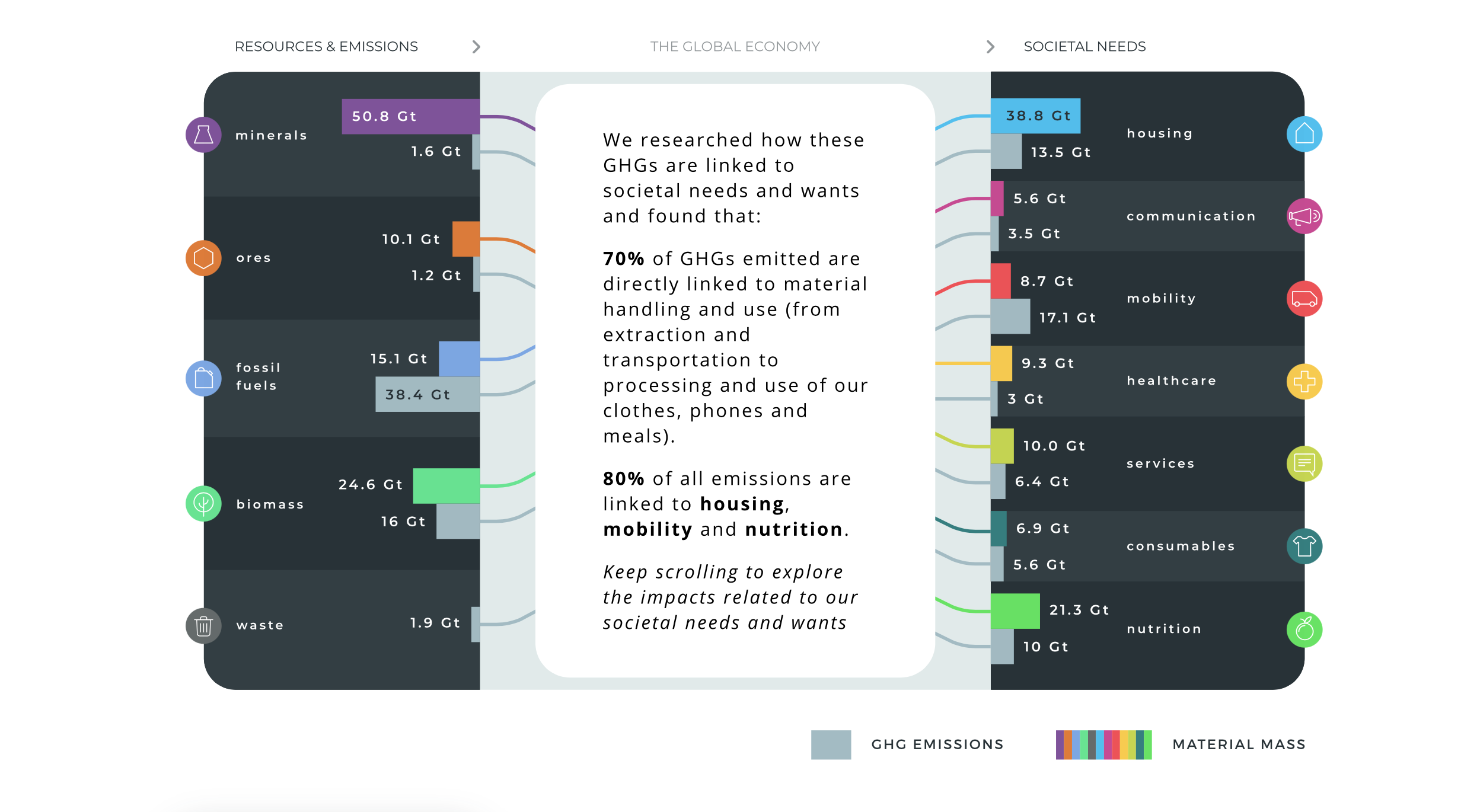 Every year our societies globally consume a huge quantity of resources (100 GT in 2020) and are in the process producing vast quantities of GHG emissions (nearly 60 Gt in 2019) along with other environmental pressures. The OECD projects that material extraction will grow by 40% up to 2040 and close to 90% by 2060 compared to 2017. Industries are the building blocks of our economy and a major contributor to GHG emissions and waste.